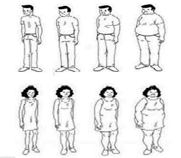 sobrepeso y obeso(a). Los participantes se autopercibieron en una de
