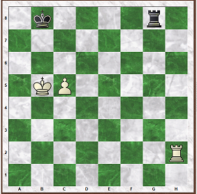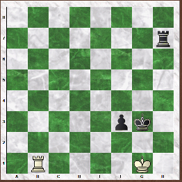 3...Rf8 el negro no tiene nada útil que hacer, así que espera 4.Rb7+ Ka8 [4...Kc8 sería el mismo proceder 5.Ra7 amenaza mate y tras 5...Kb8 6.c7+ el peón fuerza al negro a ir a la casilla c8 6...Kc8 7.Ra8+ las negras pueden rendir] 5.Ra7+ Kb8 6.c7+ Kc8 7.Ra8+ 1–0 En posiciones de este tipo, es importante, tanto para lograr la victoria como para entablar se deben conocer determinadas premisas: 1. Qué es lado corto y lado largo. 2. Ubicación de las piezas. 3. Quién juega. Respuesta - posición 5 Se conoce como