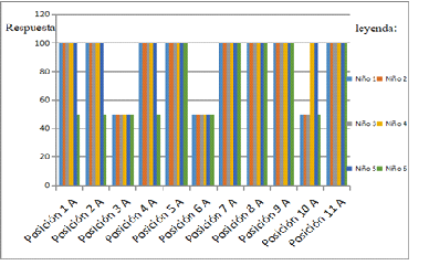 Figura 2. Respuestas dada por los niños al inciso A sobre las 11 posiciones.